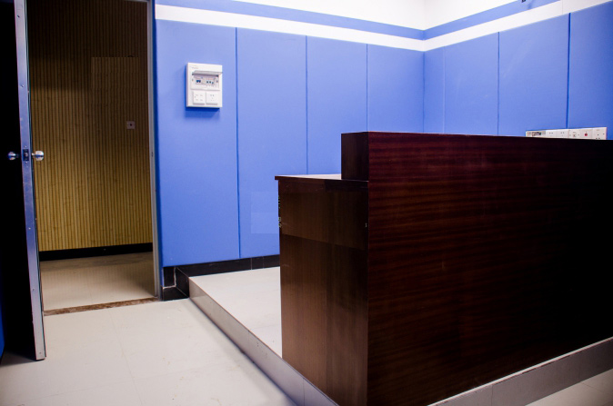 佛山市公安局巡邏警支隊的審訊室近日已經完工,主要采用吸音軟包和槽木吸音板進行裝修,整個環境比較通明透亮,審訊室內的軟包使用的是藍色,給人感覺冷靜、嚴肅。而軟包還有一個作用就是防止被審人在審訊過程中受到刺激而發生過激的撞墻行為。