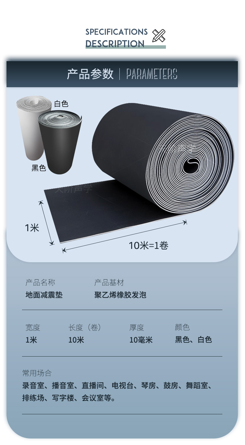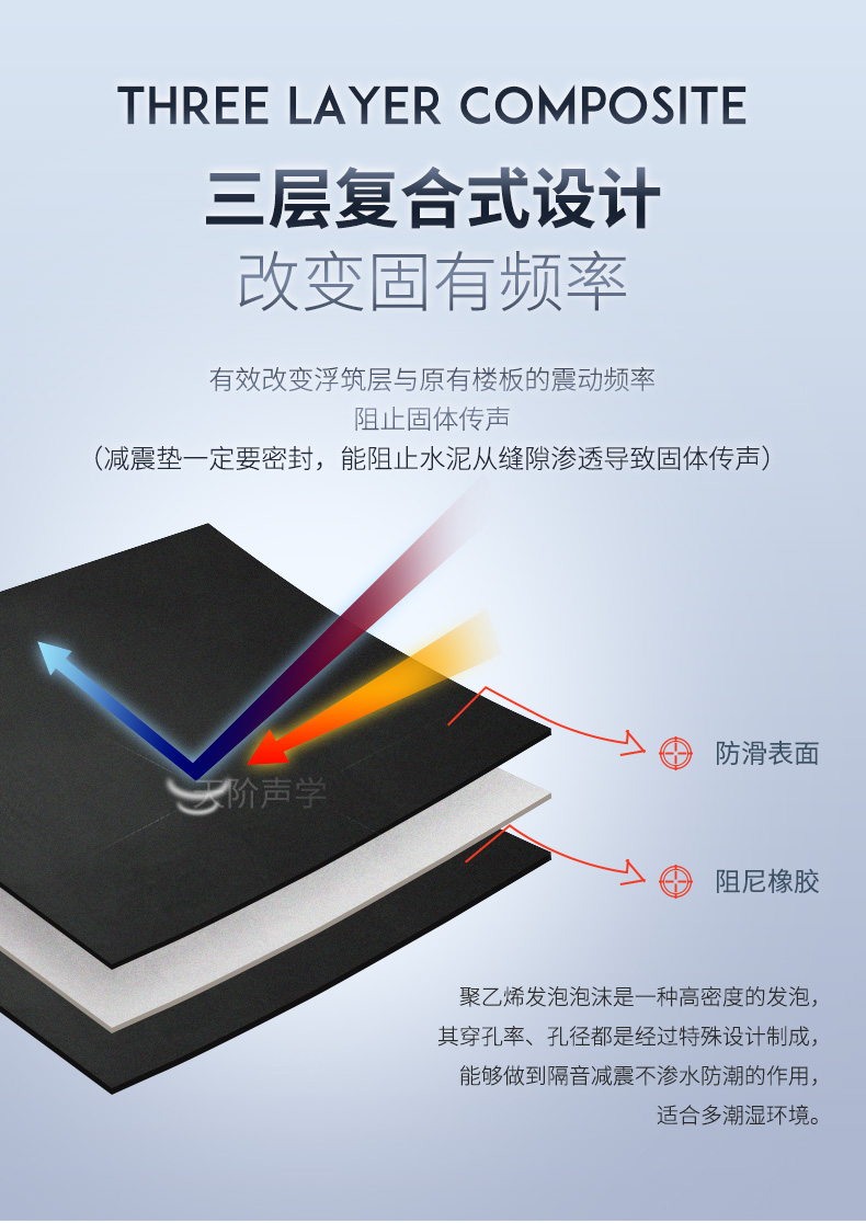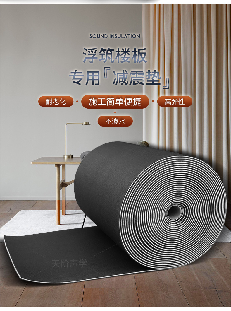 減振墊主要應(yīng)用于KTV、酒吧、健身房、住宅、賓館、酒店、學(xué)校、商務(wù)大廈;KTV、夜總歌舞廳等娛樂場所及其它需要隔音減振的地方,具有的阻尼減振效果,是一種性價比高的輔助地板材料。