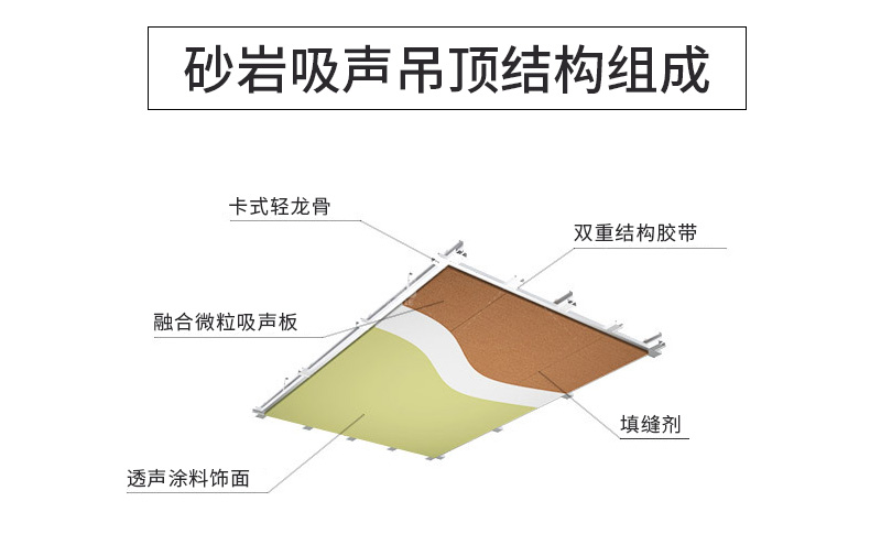 砂巖吸音板它的基材有兩種,一種是具有吸聲防火**的強化玻纖板為基材,這種基材為大家所熟知,也是很多設計師慣用的一種高端吸聲材料;另外一種基材是由特定直徑的輕質砂粒為原料,通過聚合技術使每個顆粒之間如焊接般聚合在一起,由于無機顆粒的表面不規則形狀或聚合空隙,微粒之間形成了大量不規則且互相連通的微觀孔隙結構。