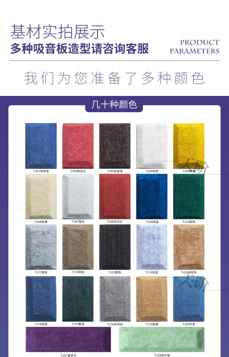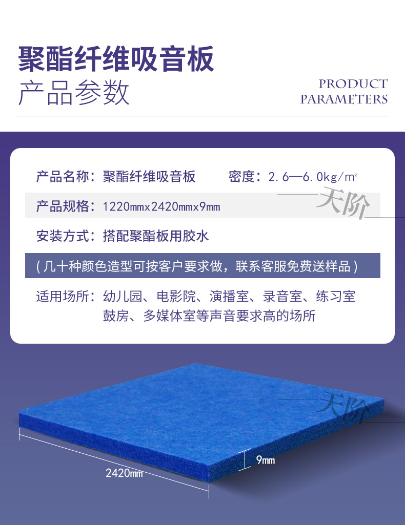 聚酯纖維吸音板產(chǎn)品參數(shù):