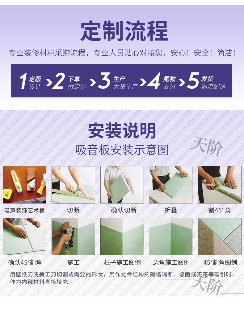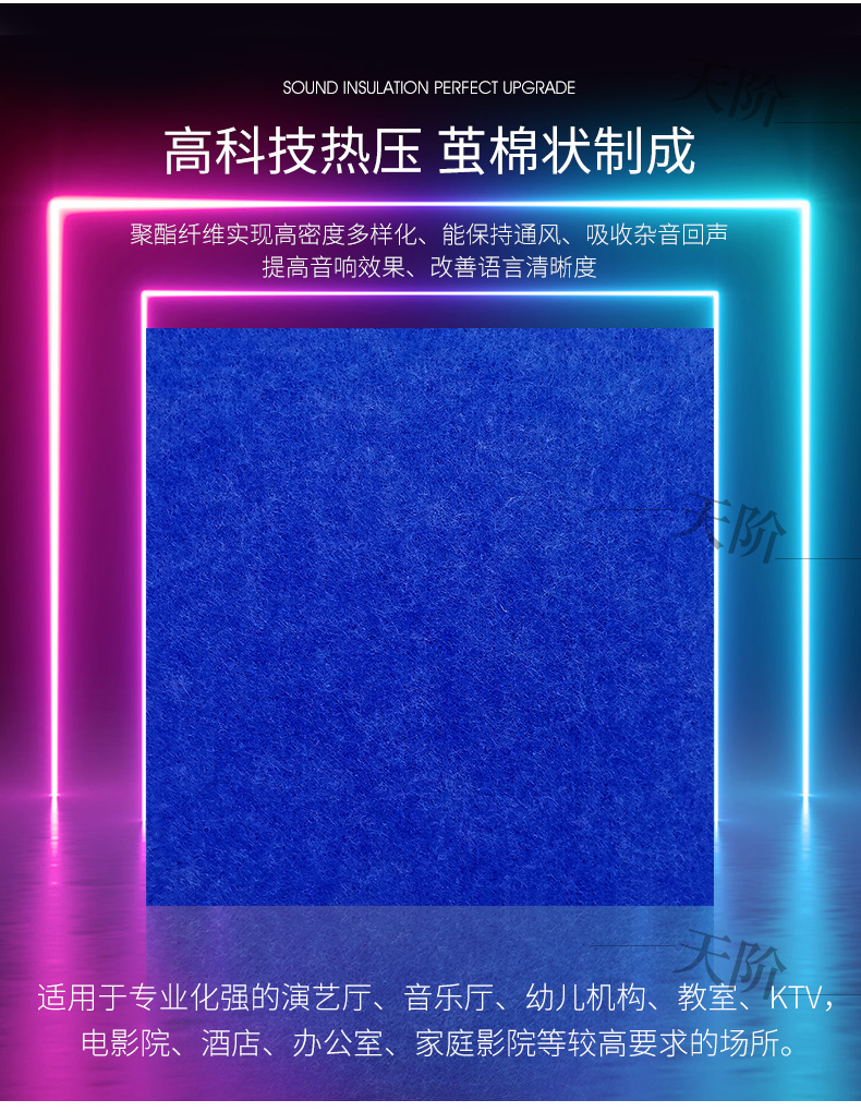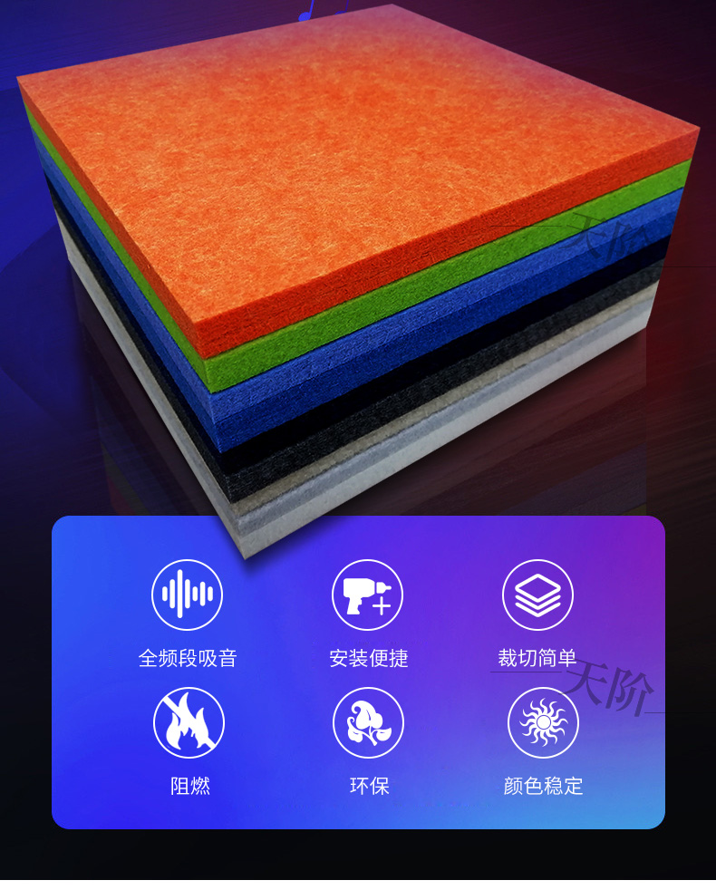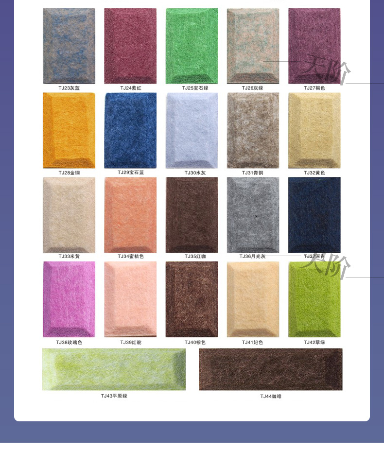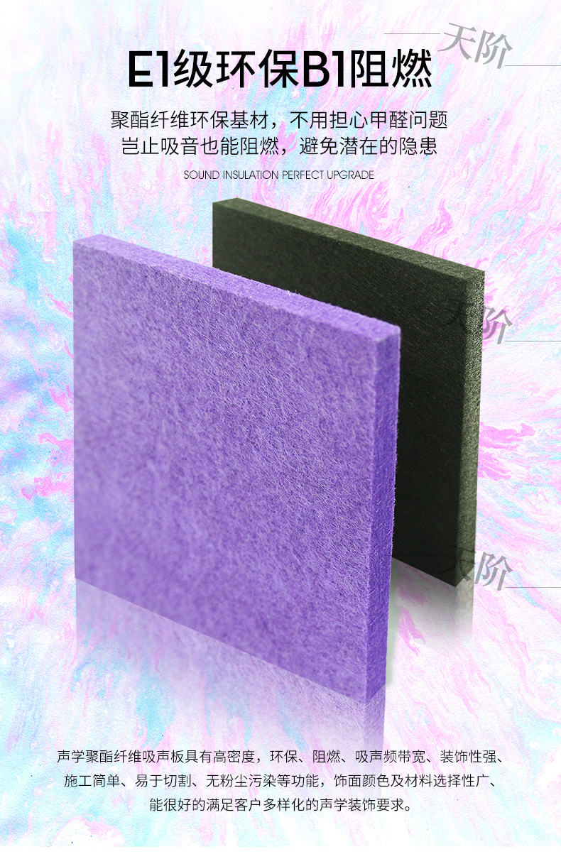 聚酯纖維吸音板又稱聚酯吸音板或纖維吸音板,是一種理想的吸聲裝飾材料。具有環(huán)保、阻燃、易除塵、易切割、可拼花、施工簡便、性價(jià)比優(yōu)等特點(diǎn),有多種花紋和顏色可供選擇,可滿足不同風(fēng)格和層次的裝修要求。聚脂纖維吸音板在國內(nèi)裝飾材料和聲學(xué)工程領(lǐng)域,應(yīng)用非常廣泛,得到眾多國內(nèi)**聲學(xué)專家的肯定與贊揚(yáng),并深受各界室內(nèi)設(shè)計(jì)師、聲學(xué)設(shè)計(jì)師之信賴和選用,成為國內(nèi)大部份城市的建筑聲學(xué)、產(chǎn)品降噪等工程的材料首選。