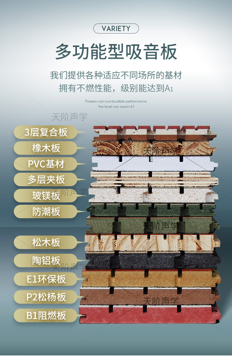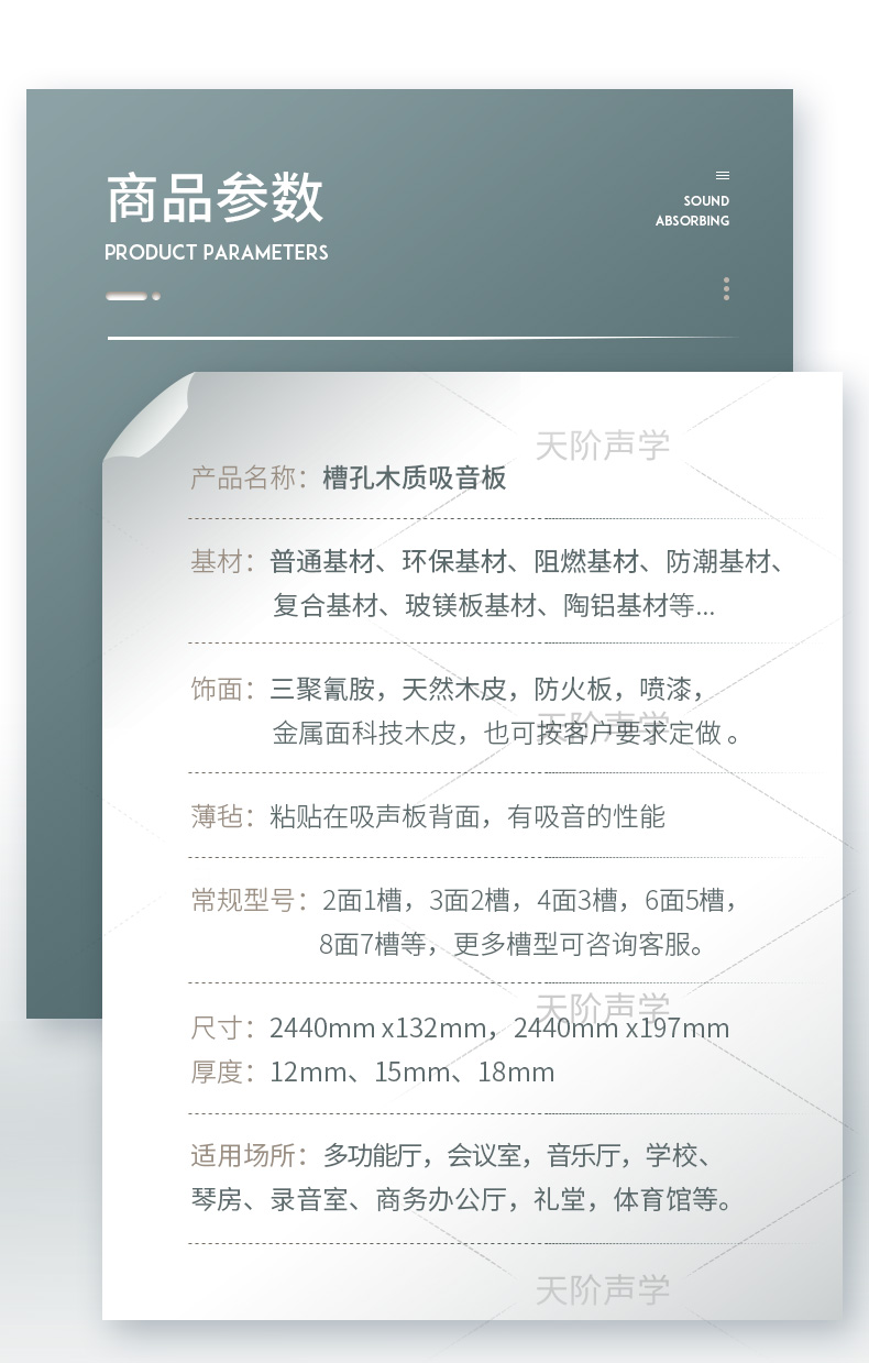 吸音板規格、厚度、基材和飾面選擇很多,詳情致電天階聲學