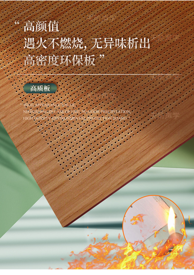 天階聲學(xué)孔木吸音板采用高質(zhì)的中纖板、具有環(huán)保、防火、防潮等性能,飾面顏色及材料選擇性廣,能很好地滿足客戶多樣化的聲學(xué)及裝飾需求。較槽木吸音板,孔木吸音板相對(duì)抗撞擊能力強(qiáng)。